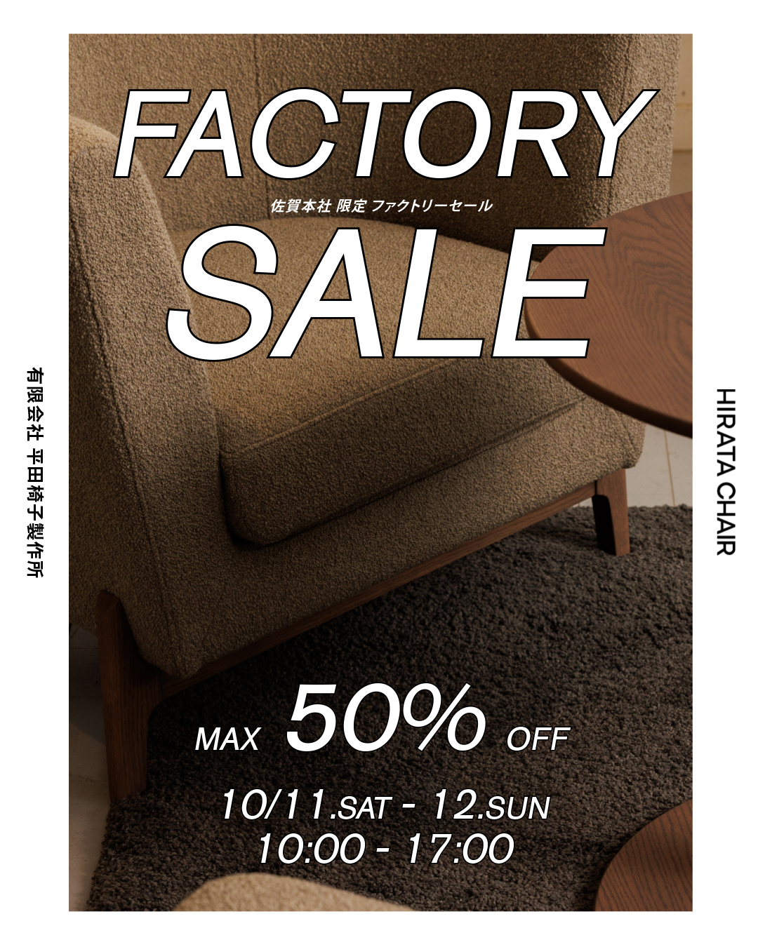 【最大50%OFF!ファクトリーセール】10/11(土)・12(日) 2日間限定で開催!